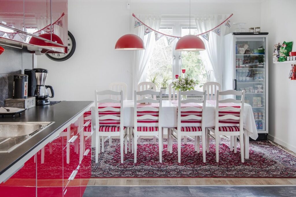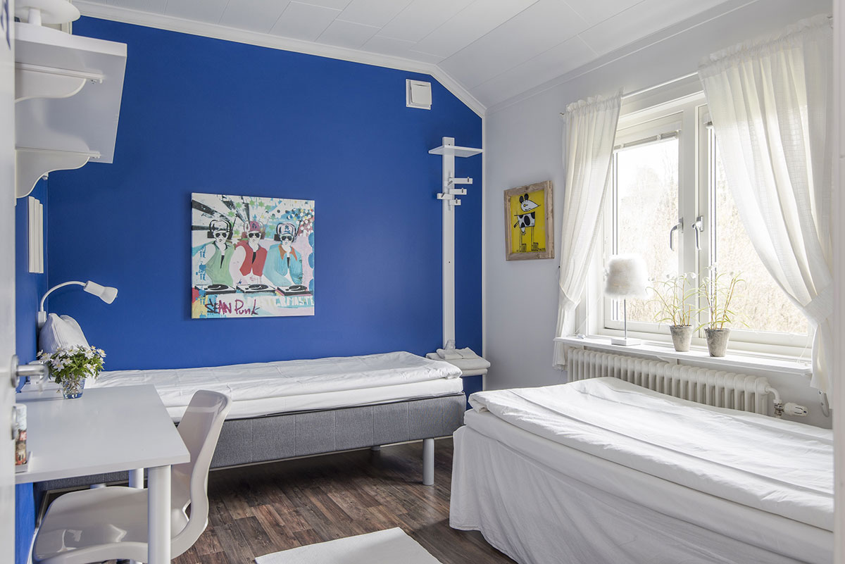 En självserverad frukost ingår i övernattningen och vill du laga mat har du ett fullutrustat kök till ditt förfogande. Det finns två badrum och två toaletter samt ett separat duschrum i huset och i bästa fall får du ett eget, i värsta fall får du dela med 2 andra rum. Köket är gemensamt för samtliga rum.